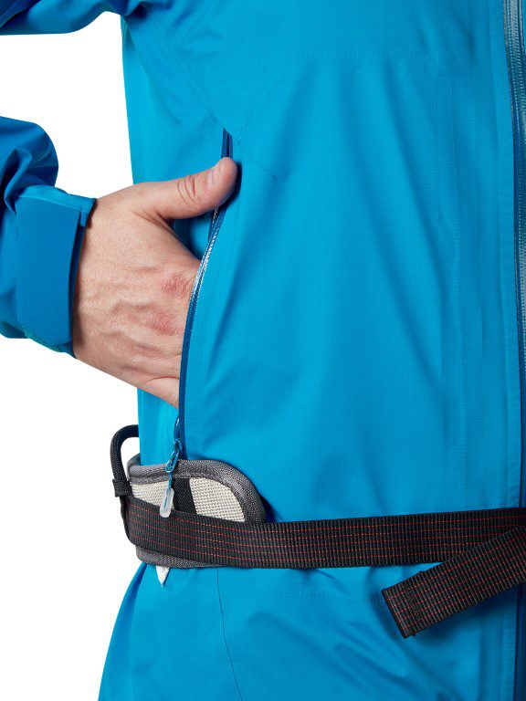 - Ein Klettergurt unter der Jacke ist mit dem praktischen Zwei-Wege-Reißverschluss leicht zu greifen.