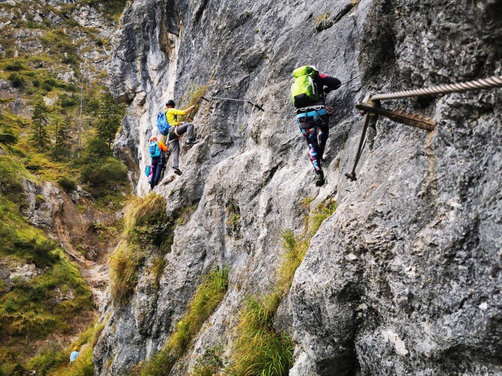 Alles in allem ein sehr schöner Klettersteig, in dem einige coole Elemente verbaut wurden und sich raffiniert die Felswand neben dem Hausbachfall hoch schlengelt, den ich aber nicht unbedingt einem Anfänger oder Kindern empfehlen würde.