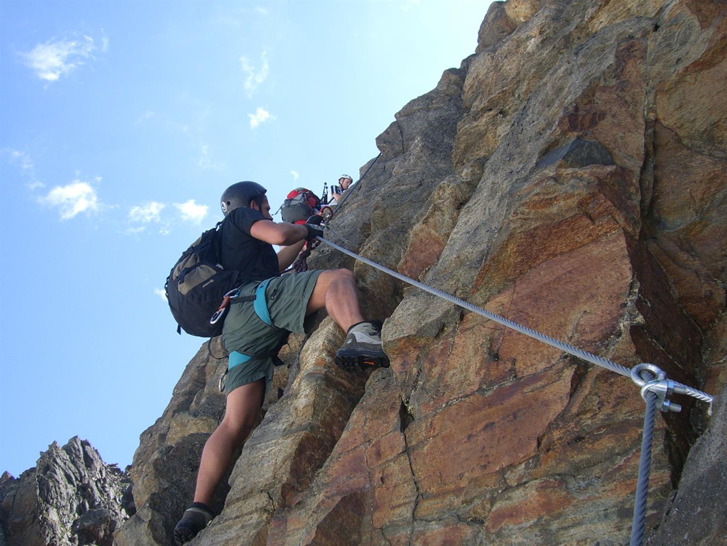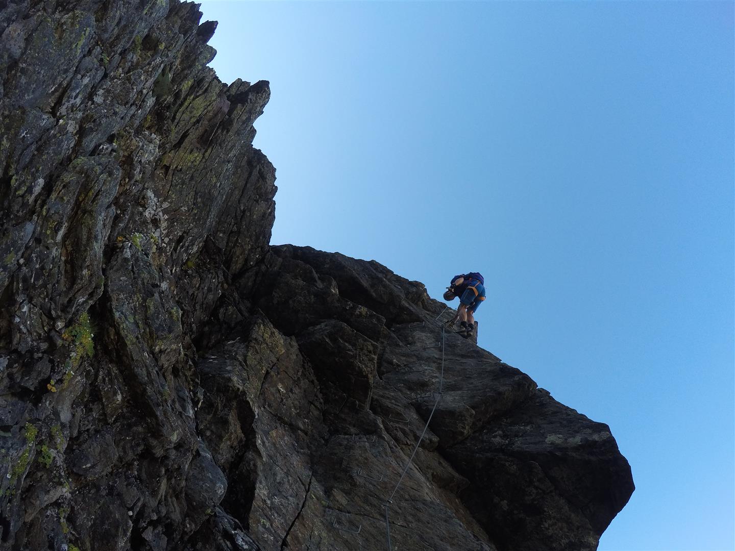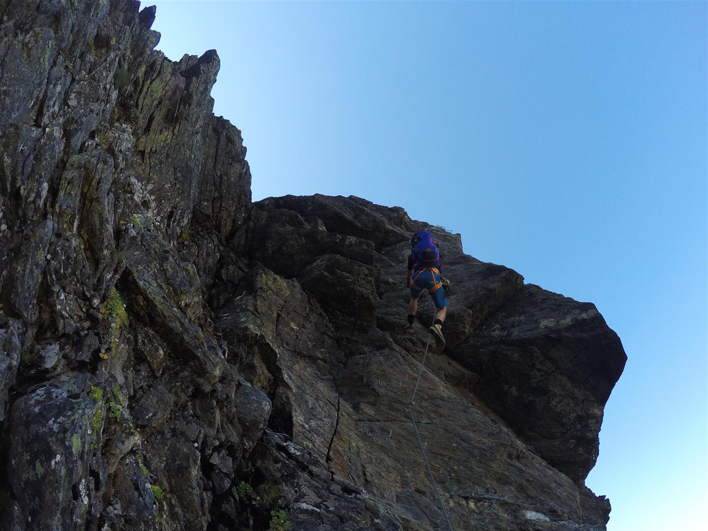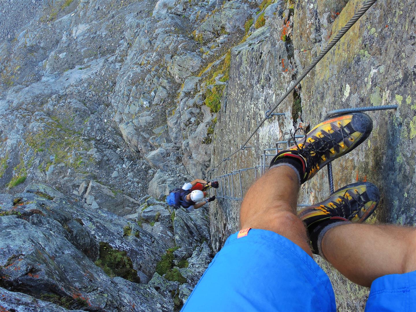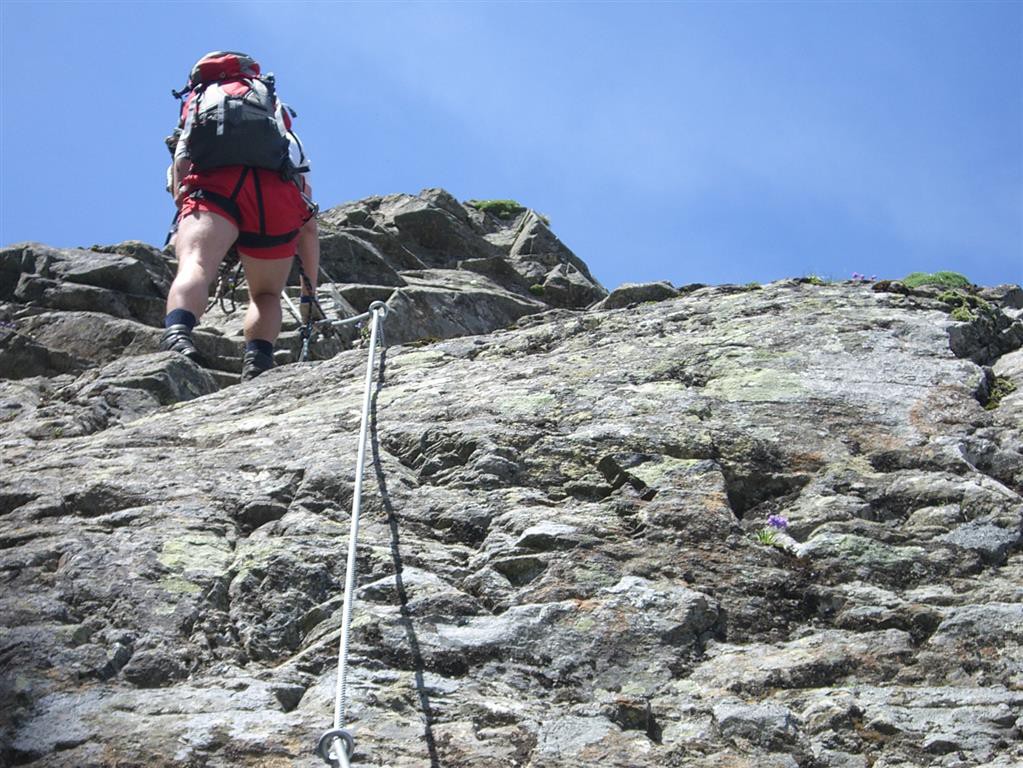 In der 1. Sektion vom Panorama Klettersteig ist das Gaudiwandl (D) und die Schlusselstell (D/E), eine uberhangende Trittbugelstelle. Der Rest ist schone Kletterei bis C.