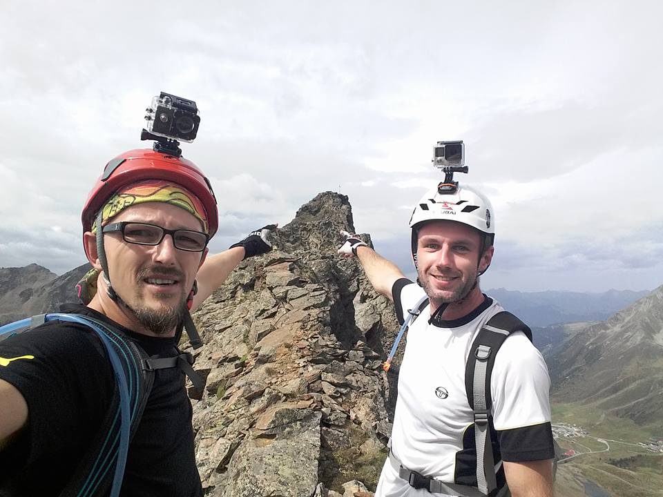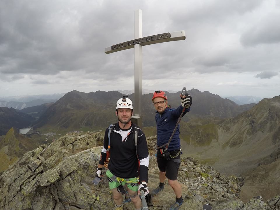 Ferrata : Wir haben für die ganze Ferrata 2 St gebraucht. Der erster Teil fängt mit einer D Wand wo mann schnell an der Höhe gewinnt. Nachher geht es relativ einfach weiter bis zur der D/E Stelle die einige Meter schöner Kletterei zu bitten hat aber ohne Probleme zu überwinden ist. Nach der D/E Stelle endet der erster Teil und von dort nach zirka 20minuten Gehzeit kommt mann an den zweiten Teil. Nach den ersten C/D metern kann eine kleine Pause angelegt werden hehe auf einer Bank die im Felsen festgeschraubt ist. Nachher geht es über leichten Passagen weiter bis zum Grat wo noch einige Meter Gratwanderung auf sie warten bevor sie den Gipfel von Pockkogel 2807mümn erreichen. Auf dem Gipfel bekommen sie eine super 360° Panorama zu sehen.