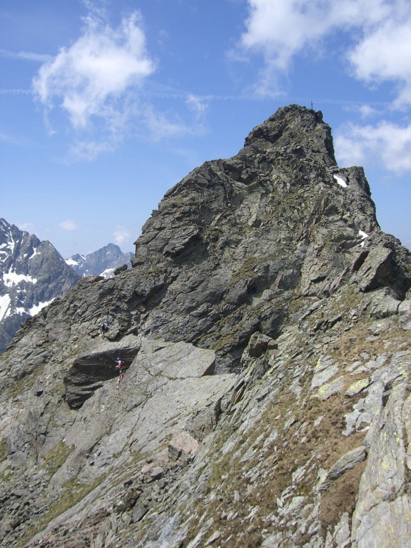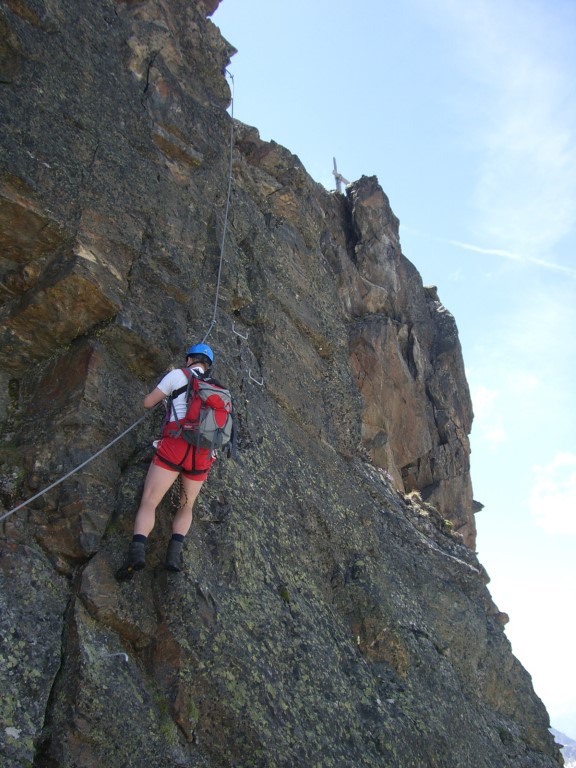 Die 2.Sektion beginnt mit einer ca. 30m hohen C bis C/D Kletterei, dabei kommt man am Skilehrerbankerl vorbei. Nach einer weiteren C-Stelle gelangt man auf die Sudseite. Ein leichter D fuhrt zum Schluß auf den Gipfel.