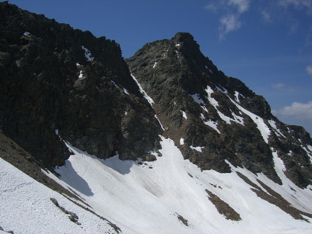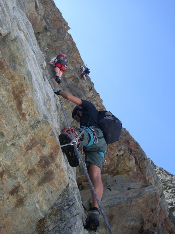 Gehgelände fuhrt zur 2. Sektion, hier muss bis in den Sommer mit Altschneefeldern gerechnet werden, gerade beim Einstieg in die 2. Sektion.