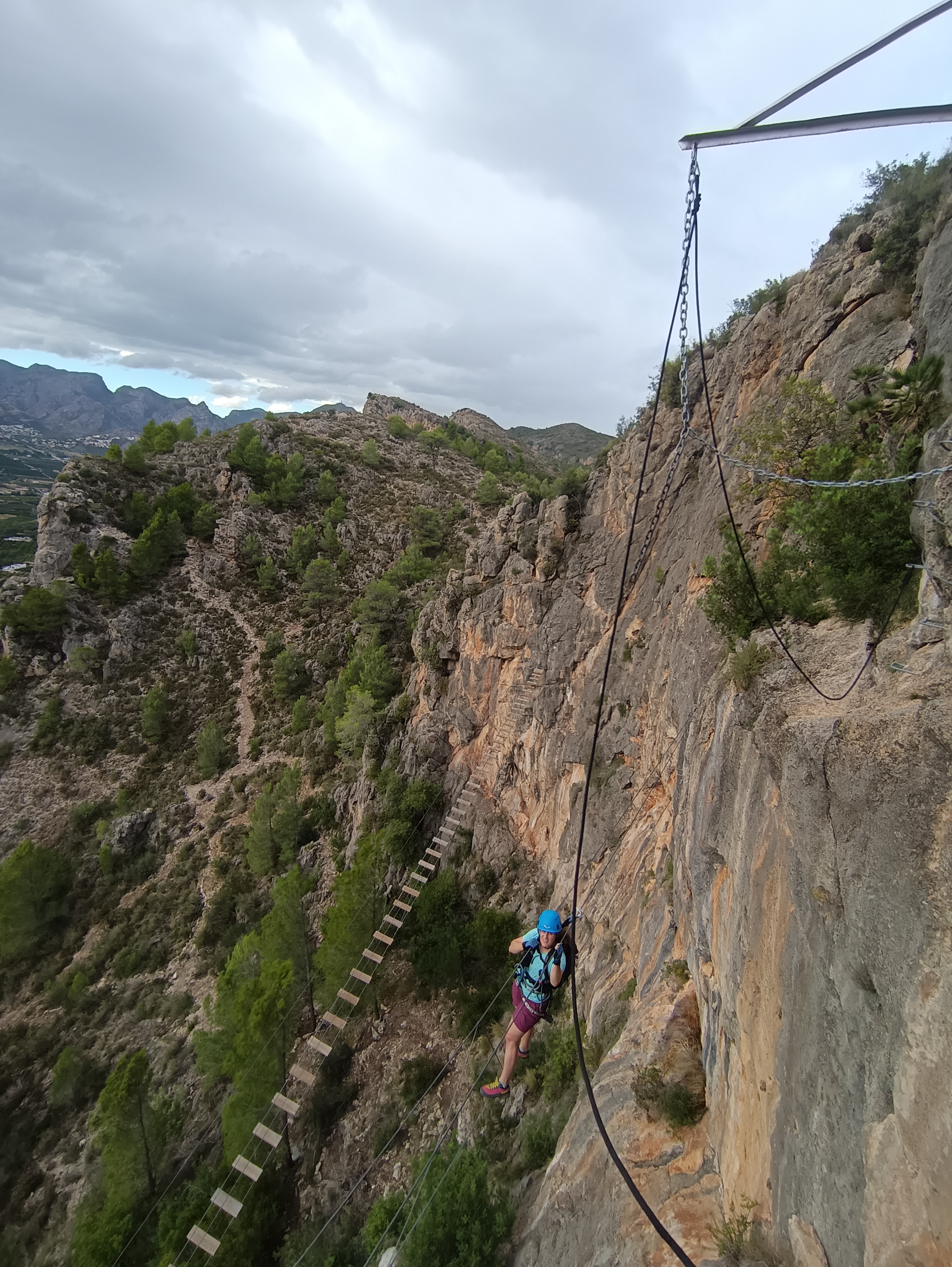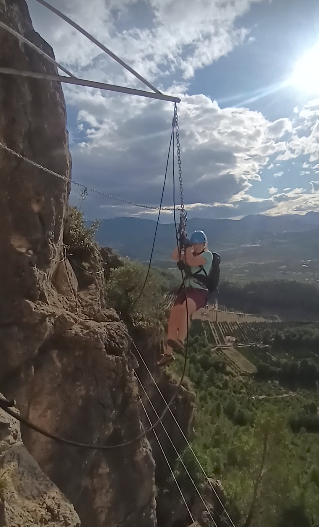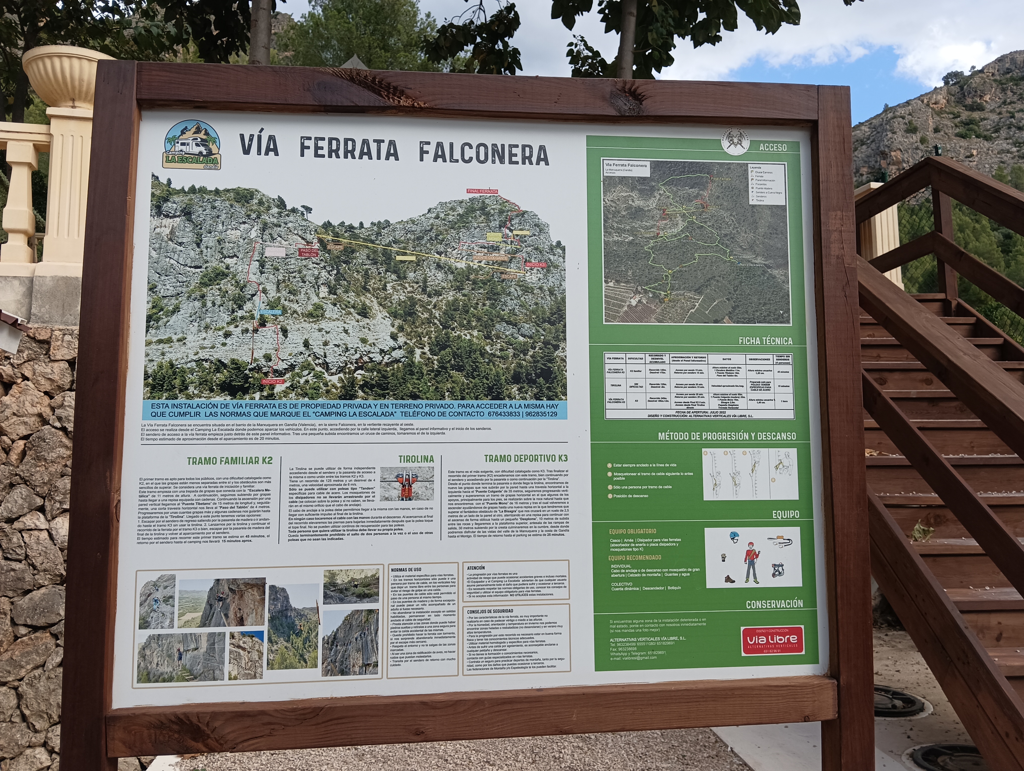 Die Via Ferrata Falconera ist kostenpflichtig (8 € – Stand 2025) und gehört zum Campingplatz Escalada Gandia, Material kann dort auch gemietet werden.