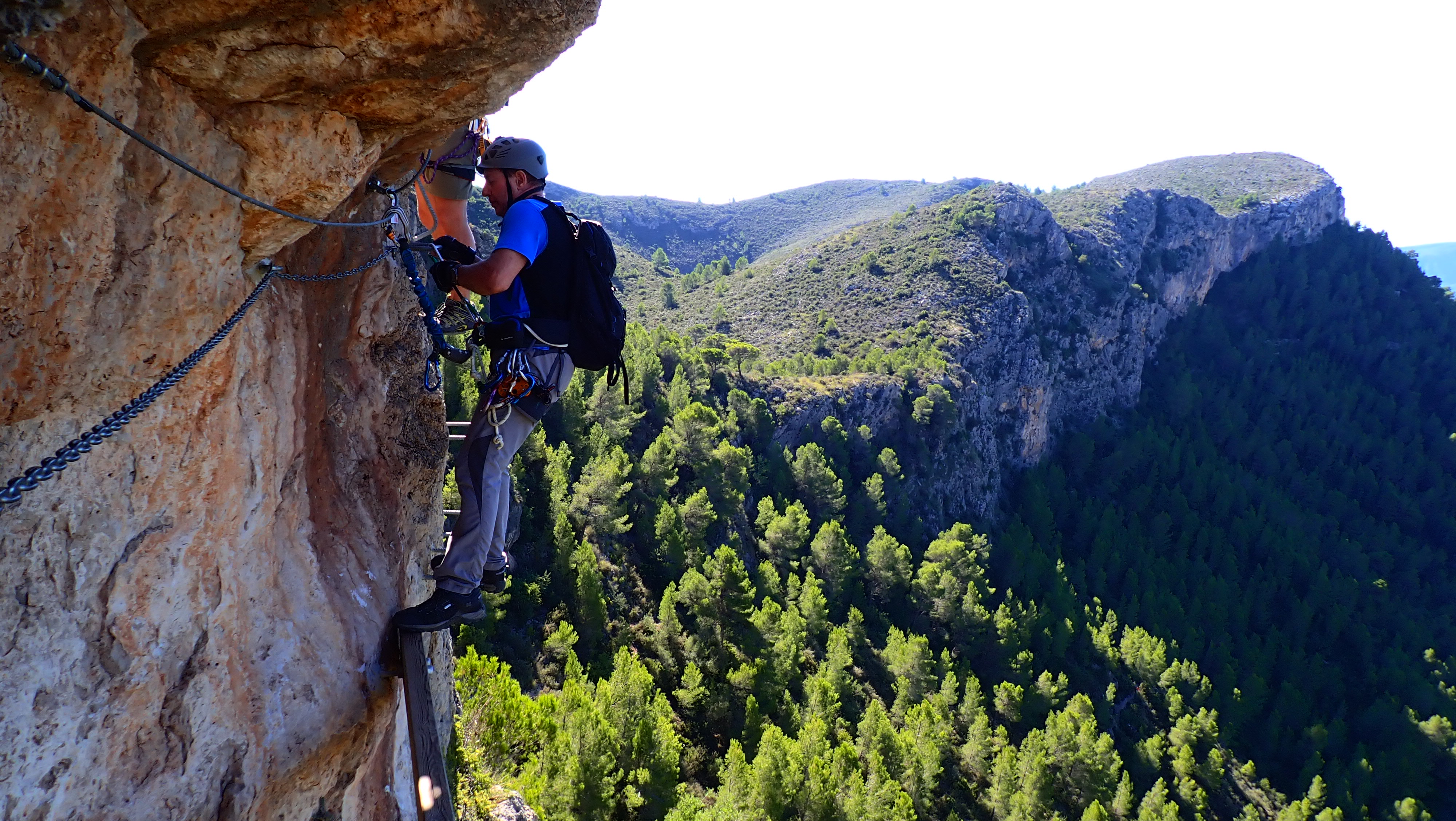 Wer zwischen Valencia und Alicante Abwechslung sucht, kommt an der Falconera kaum vorbei. Dieser Erlebnissteig besticht durch kreative Elemente und eine exponierte Lage direkt über dem Tal.