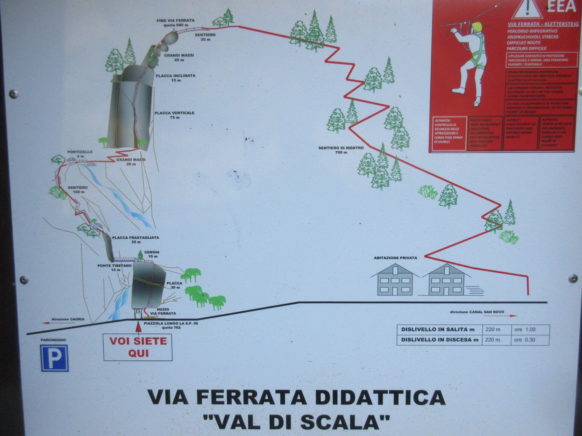 Der Klettersteig Val di Scala befindet sich nicht weit von der Stadt Caoria entfernt und ist ein talnaher Granit-Klettersteig in geringer Höhe.
