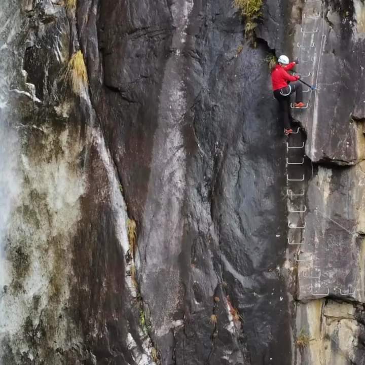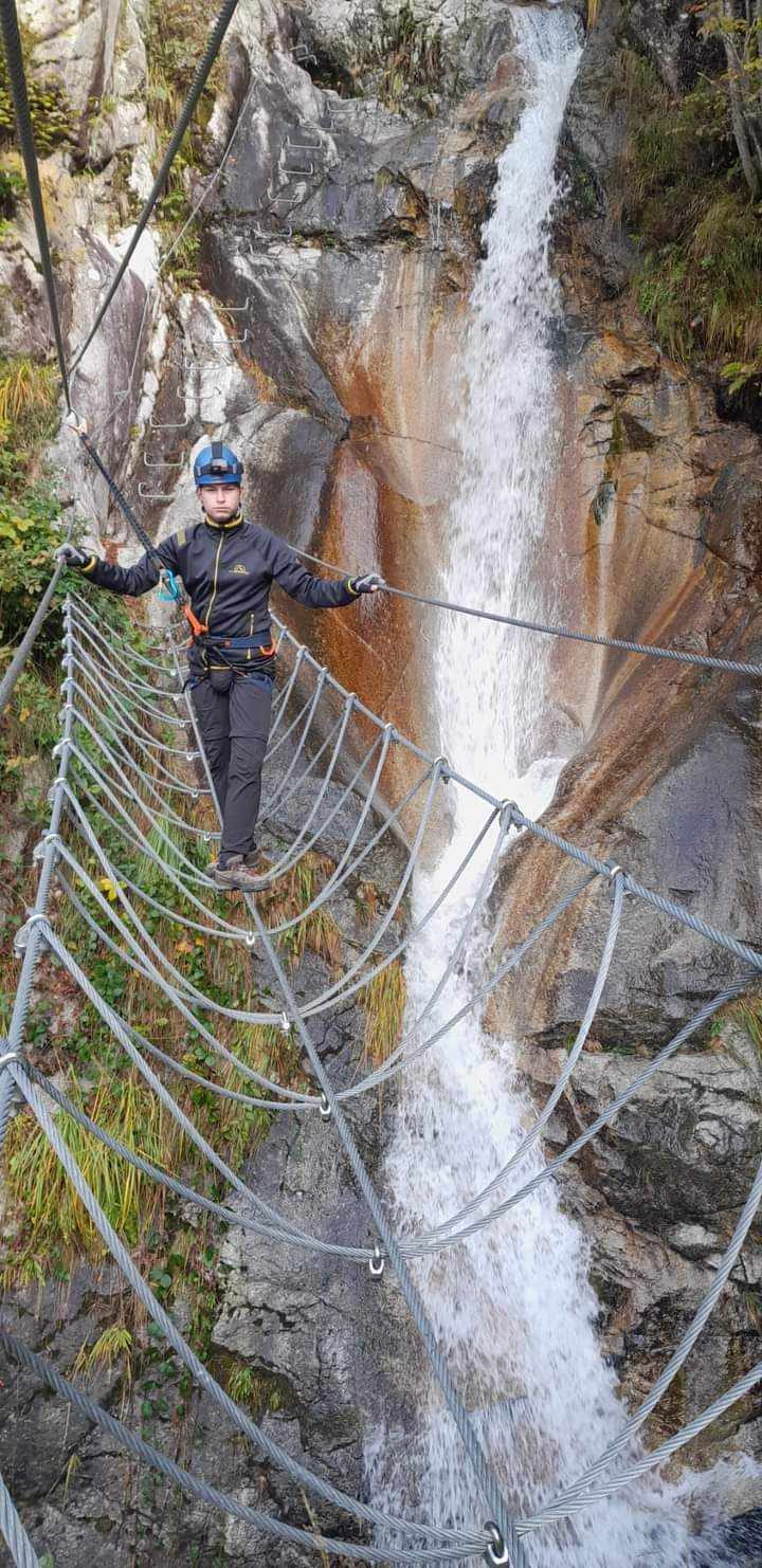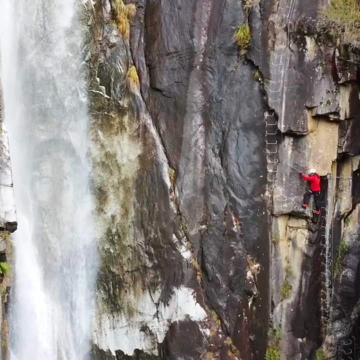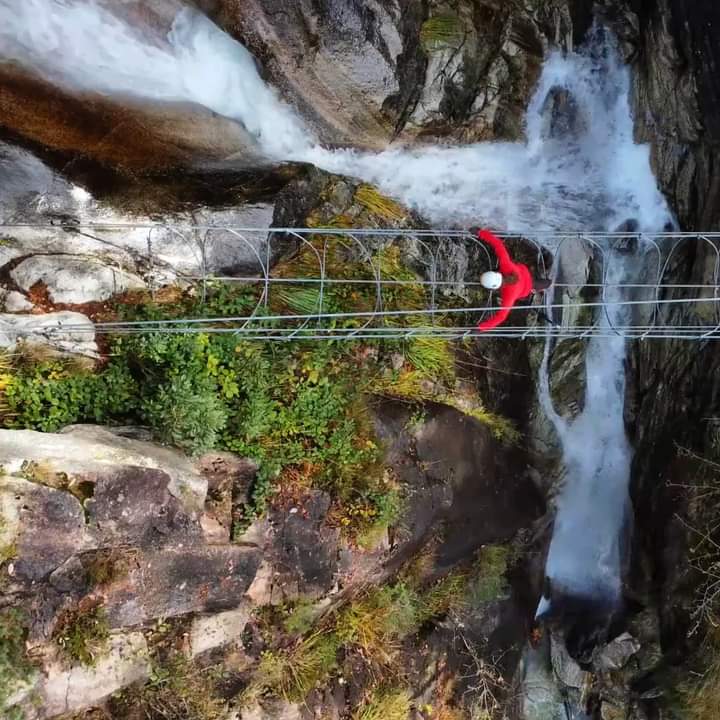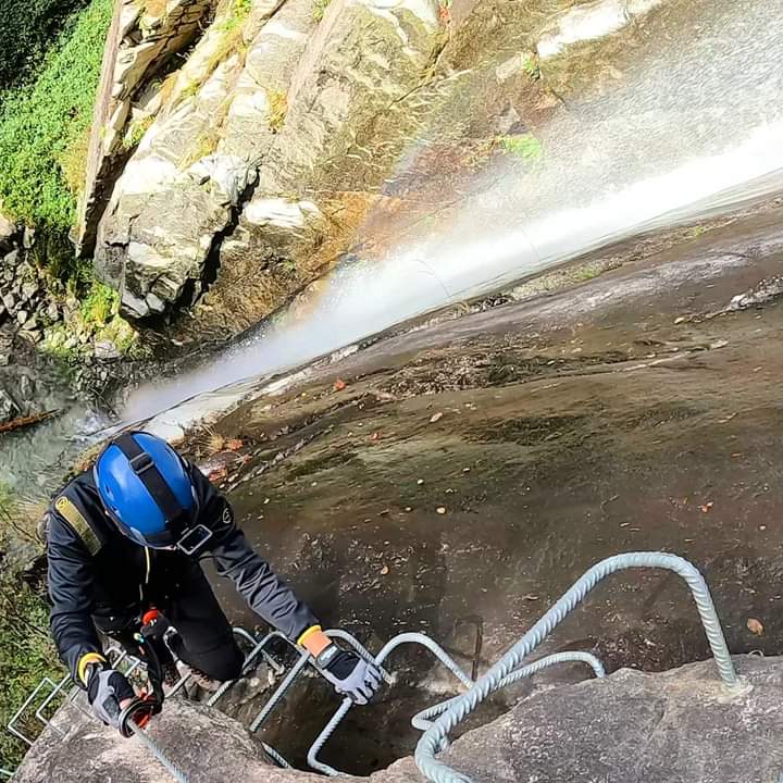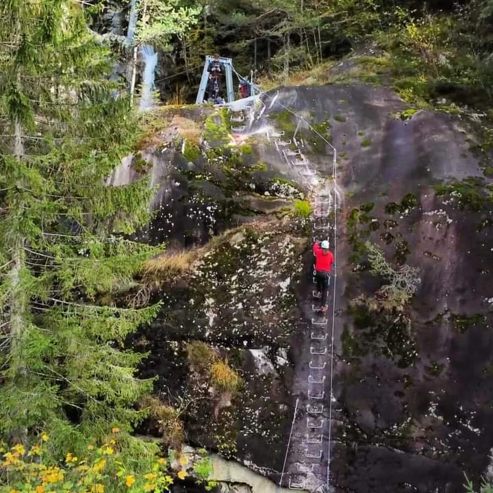 Die Route überwindet einen Höhenunterschied von insgesamt 200 Metern, mit einem sehr eindrucksvollen ersten Abschnitt, der entlang eines vertikalen Wasserfalls verläuft und eine abenteuerliche Passage auf einer 12m langen Tibet-Brücke beinhaltet. Die Via Ferrata Val di Scala ist ideal für Einsteiger und vor allem auch für Familien.